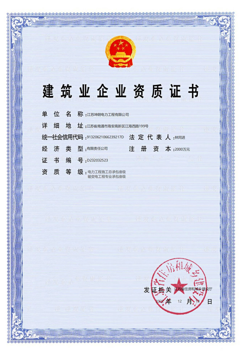 一级企业:可承担各类发电工程、各种电压等级送电线路和变电站工程的施工。